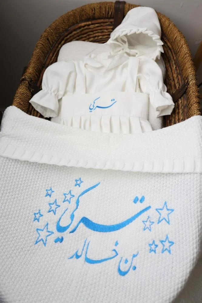 مكون من افرهول رائع، وقبعة فريدة، وشراب مميز يحمي قدميه، وبطانية أنيقة للدفء عن النوم وعند الخروج، طقم مثالي يلبي احتياجات المولود ويعمل على راحته.