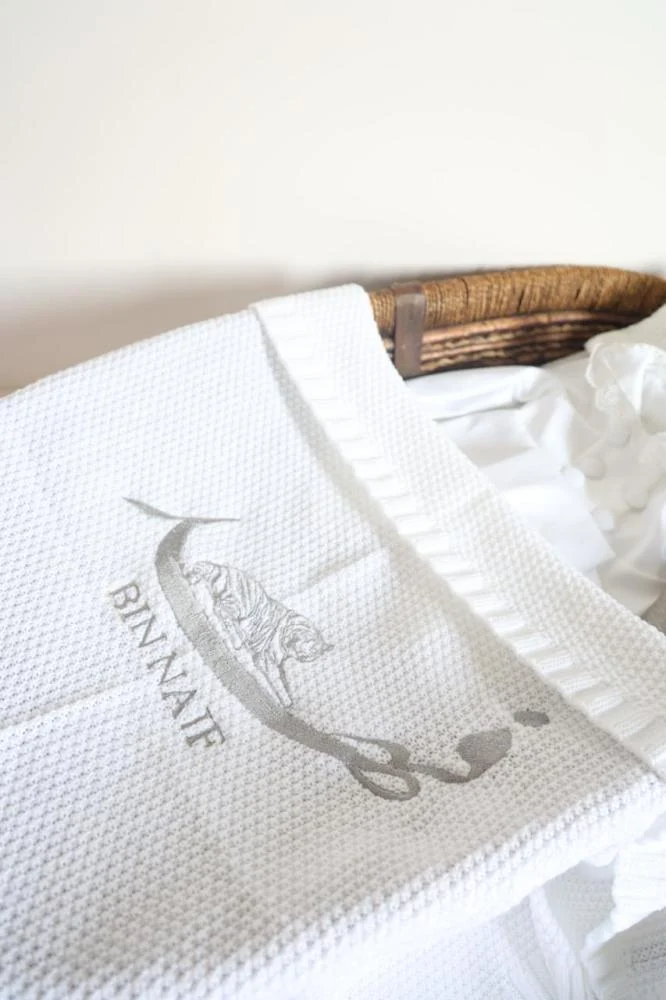 بطانية اطفال مطرز باسم طفلك بتصميم شخصي وأنيق يحمل اسم طفلك يضيف لمسة فريدة وجميلة إلى ديكور الغرفة مصنوع من خامات ناعمة ومريحة لبشرة الأطفال، ليكون الرفيق المثالي لطفلك أثناء النوم اطلبي الآن وامنحي طفلك ذكريات مليئة بالحب والراحة.